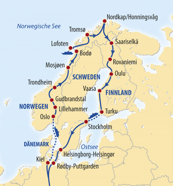 Mitternachtssonne und eine grandiose Natur in Norwegen, Finnland und Schweden